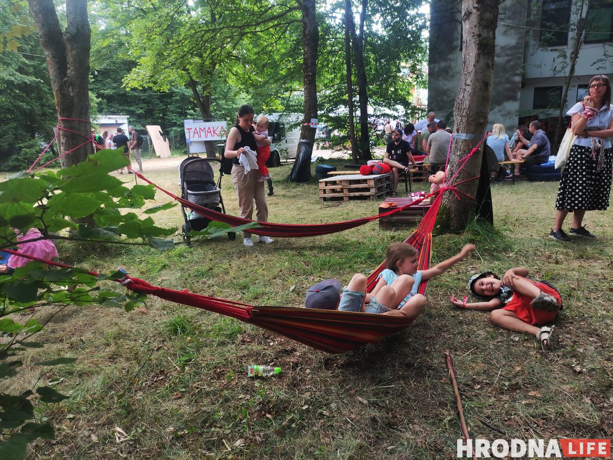 Фестиваль встречает проблемами с парковкой и БЧБ-флагами на машинах. Слышна русская, белорусская, польская, английская речь. Дети, собаки, флаги — белорусские и украинские, мини-футбол, сушка вещей, колонки, велосипеды, застолья. У большинства людей — тематические майки с надписями и рисунками, за которые в Беларуси дали бы несколько лет колонии за разжигание вражды.