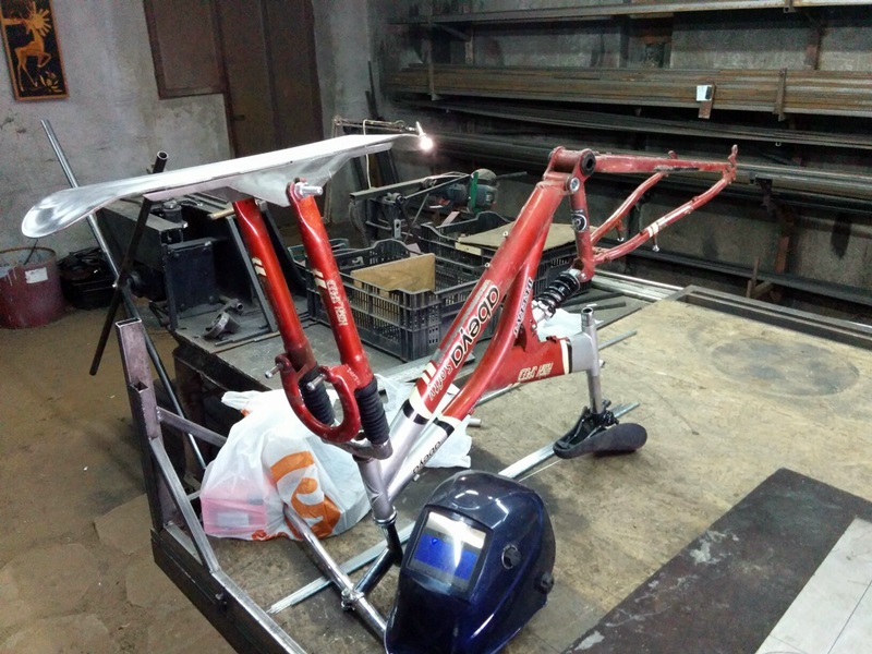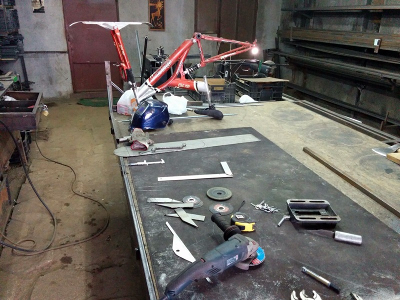 Начал с поиска велосипедной рамы, обязательно железной. Сначала нашел простенький «Аист». Уже приступил к работе, закупил амортизаторы, как коллега сказал, что у него нашелся спортивный велосипед».