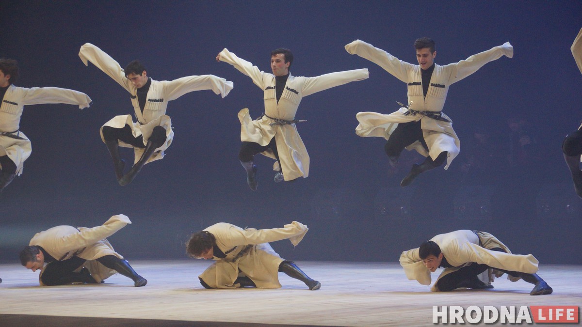 Танцоры из Национального балета Грузии 21 октября привезли в Гродно невероятное ощущение свободы и гармонии. Конусы синего света они превращали в горы, а красного — в рассветы. Обычный сценический дым стелился утренним туманом, а танцы переносили зрителей из зала то в грузинскую деревню, то на гостеприимное застолье, то на поле древней битвы.