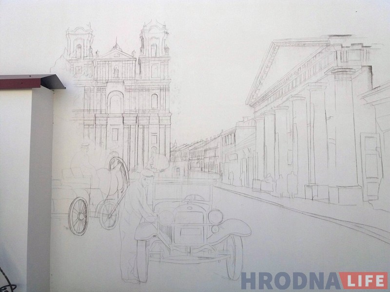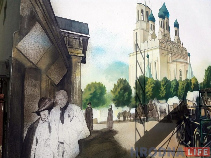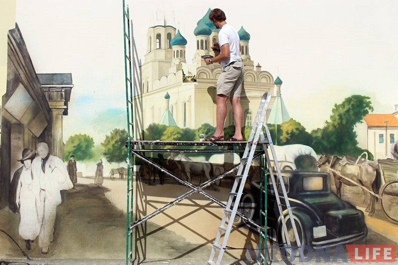 За основу росписи Алексей взял фотографии Гродно начала XX века. Это будет первая публичная работа художника. До этого работы Алексея были только в частных коллекциях.