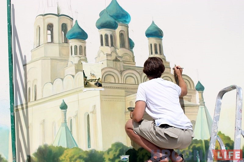 «У меня большой объем работы, думаю, на все уйдет около месяца. Сложность работы в том, что здесь я занимаюсь не только росписью, а еще многими другими вещами. Вся сложность в размерах, с таким я работаю впервые», — добавил художник.