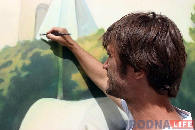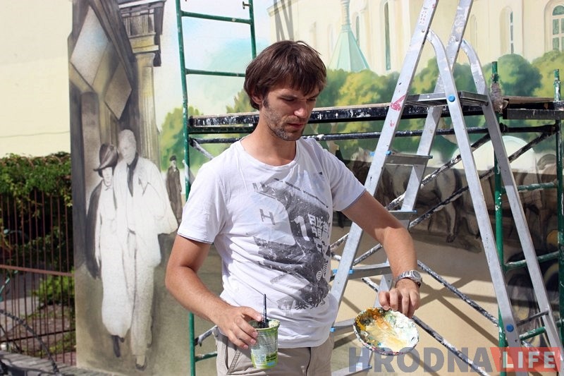 «Со мной связались представители ABC и предложили разрисовать стены, я согласился, — говорит Алексей. — Решили сделать роспись посвященную Гродно начала XX века. За основу взяли старые фото центра города. Мы хотим показать, что потеряли за период войн и разрушений. Наша цель — передать атмосферу старого города».