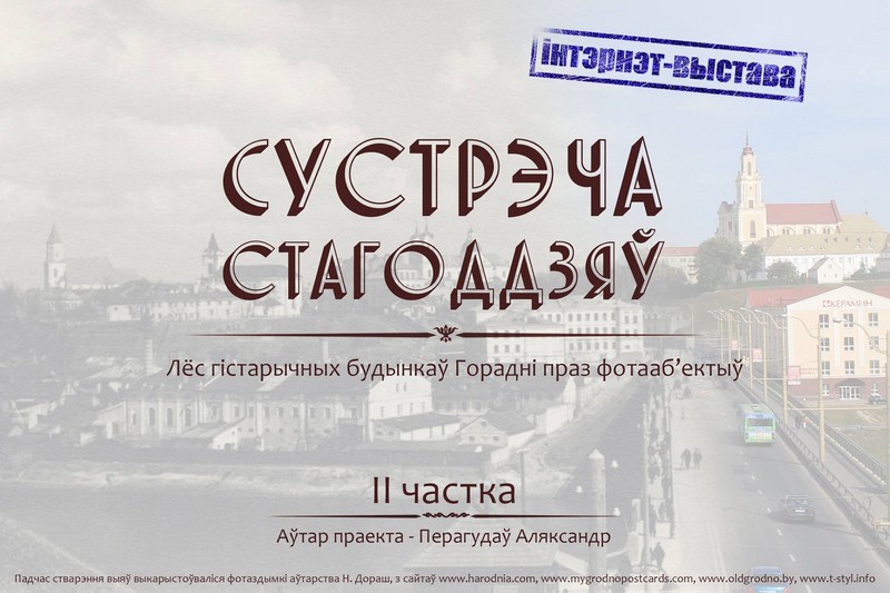 Студент истфака Александр Перегудов, известный своими графическими дизайнерскими проектами, выложил в Facebook вторую часть проекта «Встреча веков». Эта выставка фотомонтажа, где соединены современные съемки Гродно и изображения конца XIX — начала XX веков.