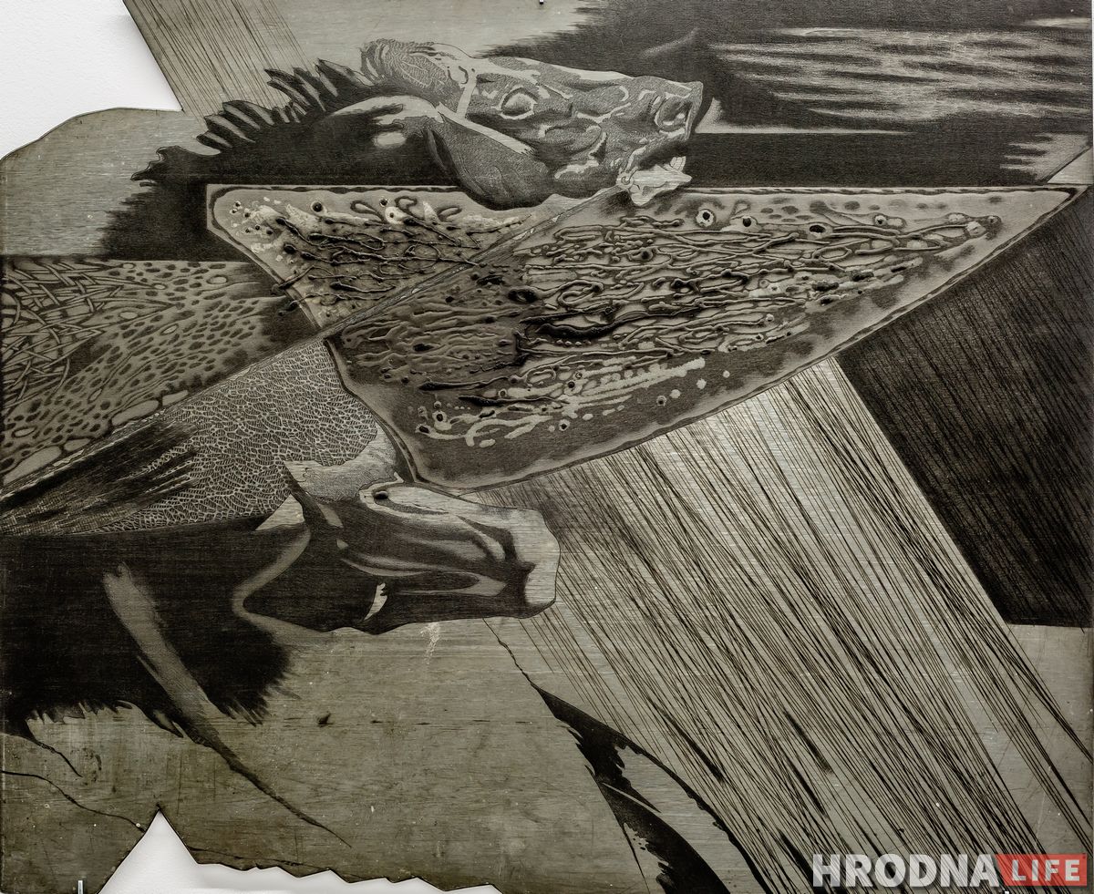 «На выходе показываешь только эстамп, отпечаток, — рассказывает Яковенко. — А процесс творчества идет на «доске». Ты ведешь разговор с металлом. А он или поддается, или нет. Бывает, берешь пластину, режешь на четыре куска и каждый кусок ведет себя по-разному. Может, солнца сегодня больше, может мороз. Может, просто настроение другое у тебя».