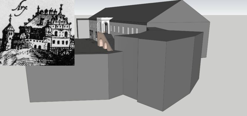 Скорее всего, эркеры на дворце очень различались между собой, рассказал Андрей Вашкевич. “Тот, что был со стороны речки Городничанки, возможно и имел какой-то колонный ритм, но не такой [как на проекте] — там не было среза угла под 45 градусов. Он выступал из стены, а не был утоплен в нее. Эркер, который был со стороны замка, выглядел по-другому, ведь располагался не на углу”, — пояснил историк.