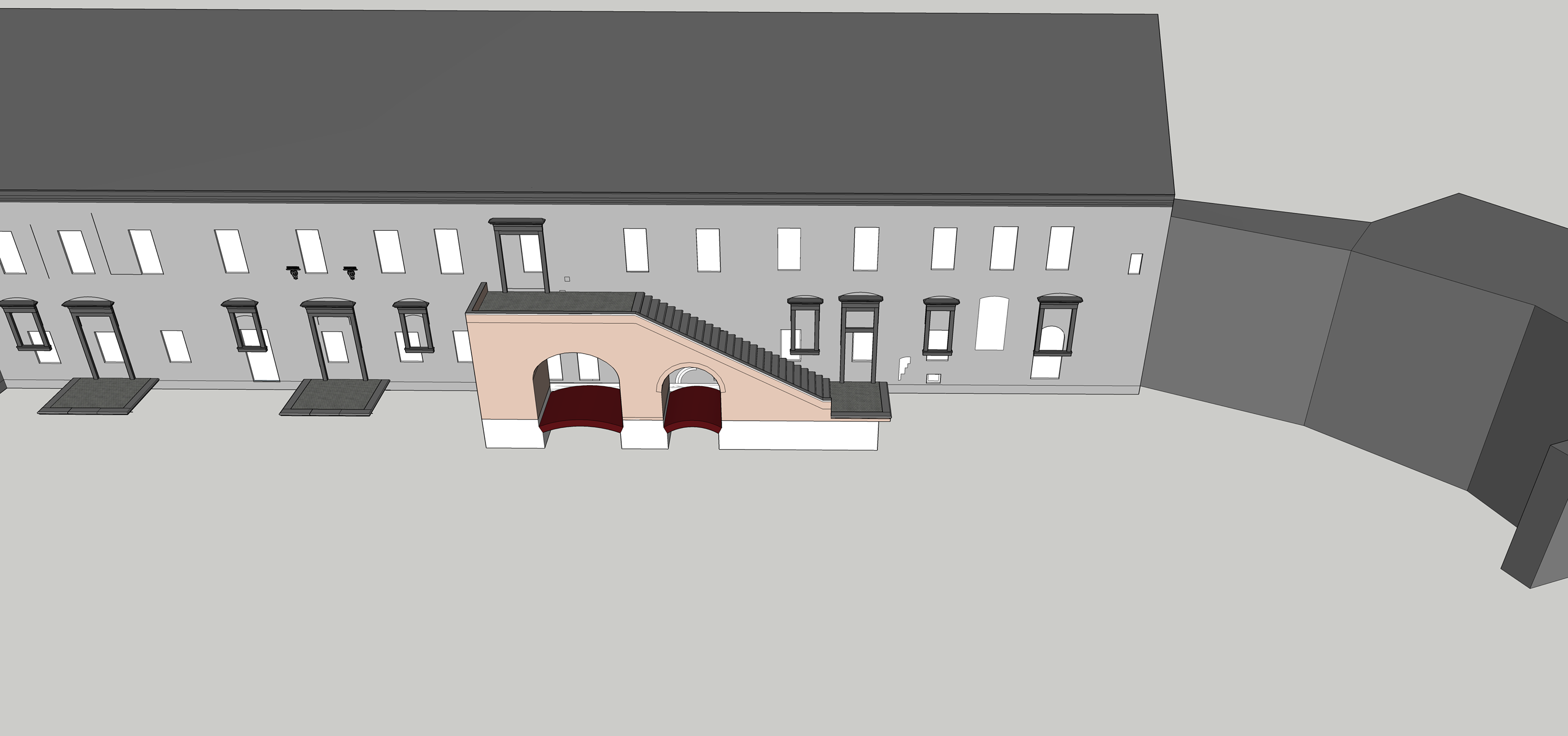 Во время раскопок 2021 года нашли начало лестницы на второй этаж, каменные ступени, часть арочной конструкции. Археологи открыли три массива, которые можно относить к XVI веку. Согласно письменным источникам и графическим изображениям, они могут быть той центральной внешней лестницей, которая вела на второй этаж.
