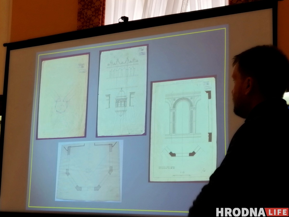 Он отразил это в своем проекте реконструкции. “В его основе [варианте ризалита по проекту 30-х — Прим. Hrodna.life] лежат четыре столба, которые, мы теперь точно знаем, были основами балкона, сооруженного в 1814 году”, — рассказал заведующий отделом новейшей истории гродненского музея Андрей Вашкевич.