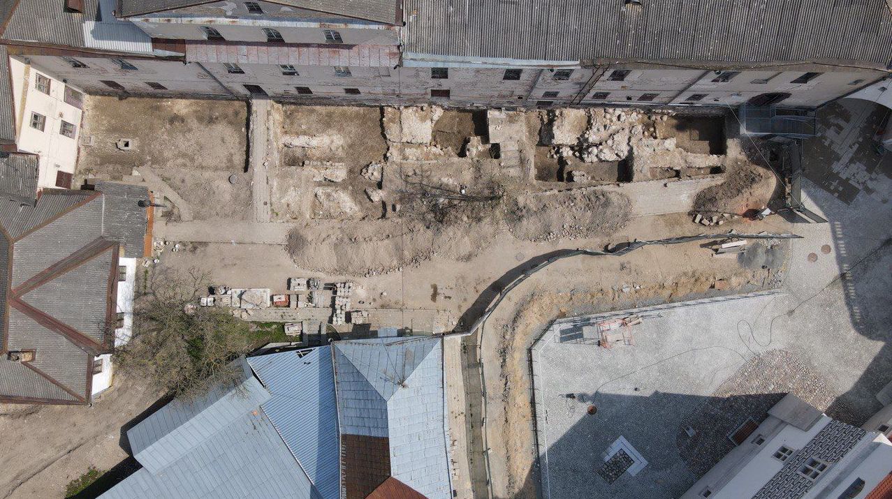Археологические раскопки вдоль фасада дворца начали в марте 2021 года. Первые известные исследования там проводили в 1930-е, рассказала заведующая отделом археологии музея Наталья Кизюкевич. Сохранилось две фотографии и несколько планов. Результатами тех раскопок в межвоенное время пользовался Ярослав Войтеховский, автор первого проекта восстановления замка Батория. На него в том числе опирался и Бачков.