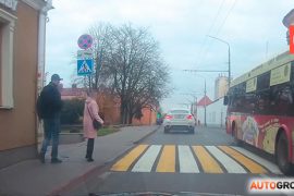 Узкий тротуар на улице К.Маркса требует от водителей быть всегда «начеку» возле нерегулируемого перехода. Читатель «АвтоГродно» Андрей говорит, что проезжает переход возле «Главпочтамта» часто…