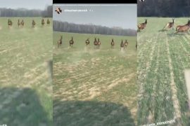 Скрины и видео прислали Onliner.by сразу несколько читателей. «Увидел в инсте, как едет микроавтобус, а перед ним бежит около 10—15 оленей или косуль (не разбираюсь).…