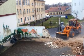 Утром 4 ноября во дворике торгового центра ABC на улице Найдуса городские службы разрушили стену с изображениями старого города. Рабочие ссылались на аварийность постройки.…