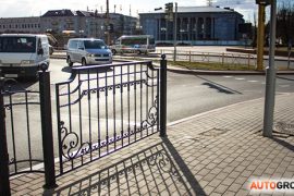 Массивный декоративный забор установили на тротуаре возле Фарного костела 4 апреля. С первого взгляда может показаться, что ограждение должно защитить ступени костела от периодически вылетающих…