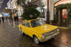 К Новому году в Гродно украшают не только улицы, но и транспорт. Желтый «Запорожец» с елкой у кофейни «Джезва» уже давно стал узнаваемой деталью…