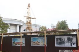На улице Замковой на строительном ограждении появились баннеры с фотографиями и информацией, что было и что появится на месте сквера за бывшим Дворцом текстильщиков.…