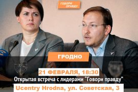 21 февраля в Центре городской жизни (ул. Советская, 3, галерея «Крыга») состоится встреча с руководством компании «Говори правду». К жителям города над Неманом приедут…