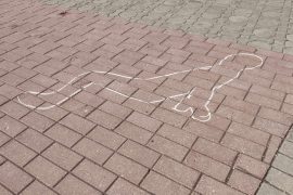 Утром 7 апреля на Советской площади в Гродно появились рисунки мелом с силуэтами людей. В таких же позах лежали на улице погибшие в Буче…