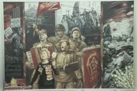 Гродненский государственный историко-археологический музей пополняет фонды. Среди закупки — картина художника из Гродно Владимира Качана “Песни великой победы”. На ней — советские партизаны, плакат…