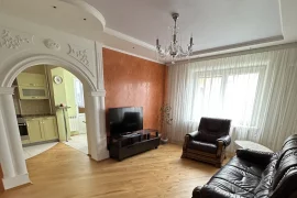 Трехкомнатную квартиру от хозяев с фантазией продают на улице Брикеля в Гродно. В комнатах – потолки сложной формы, лепнина на арках, полки в стене…